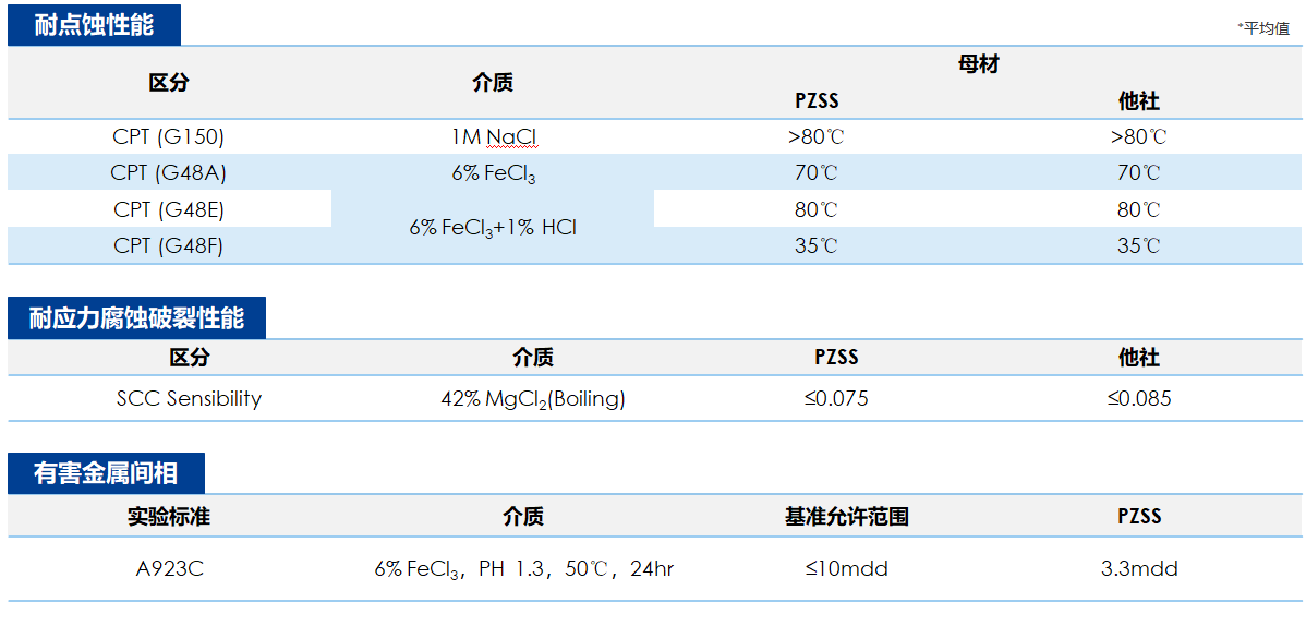 1). 铬和钼的含量很高→极好的抗点腐蚀,缝隙腐蚀和均匀腐蚀的能力