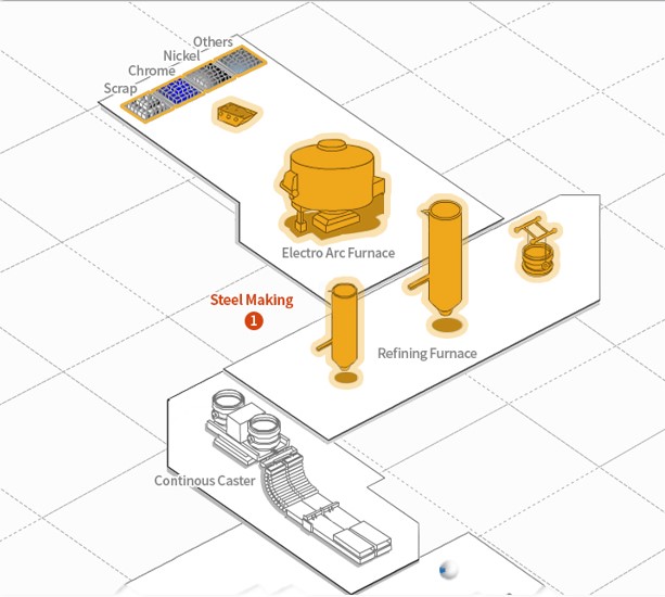 ZP304EF 冶炼方式为“电炉+AOD+连铸”短流程炼钢,对于长流程炼钢,绿色环保优势巨大