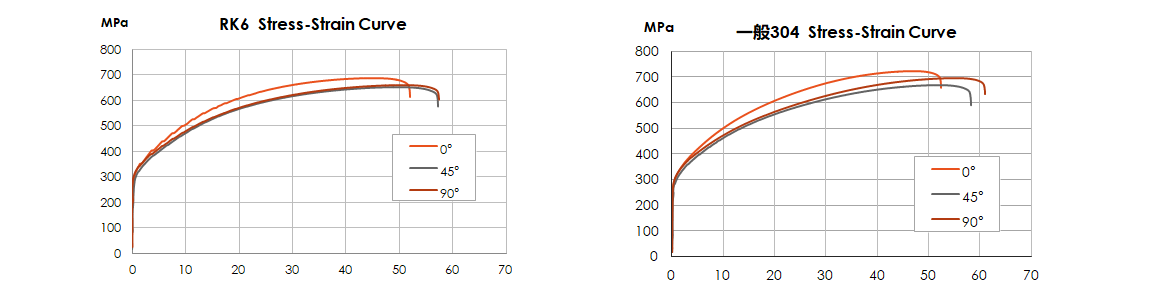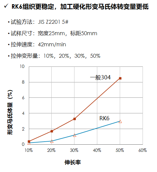 304SQ (RK6)在304钢基础上对Cu、Si等成分含量综合调整,改善材料的加工硬化特性,提升深冲性能
